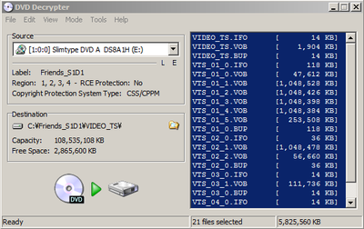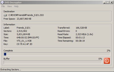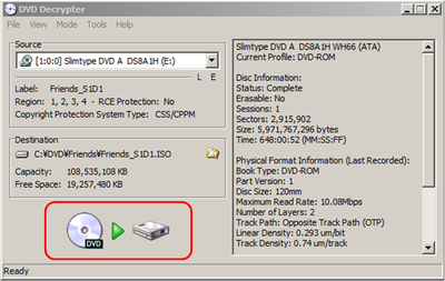 いよいよ DVD Decrypter を使って DVD をリッピングし、ISO ファイルへ保存します。