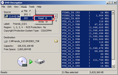 ステップ 1 : DVD Decrypter で DVD から ISO ファイルへ変換する